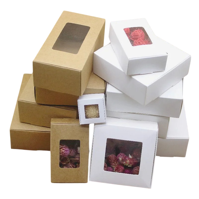 - Inhalt der Verpackung: 10 × Geschenkkarton 12 × 12 × 4 cm aus Kraftpapier mit transparentem Fenster