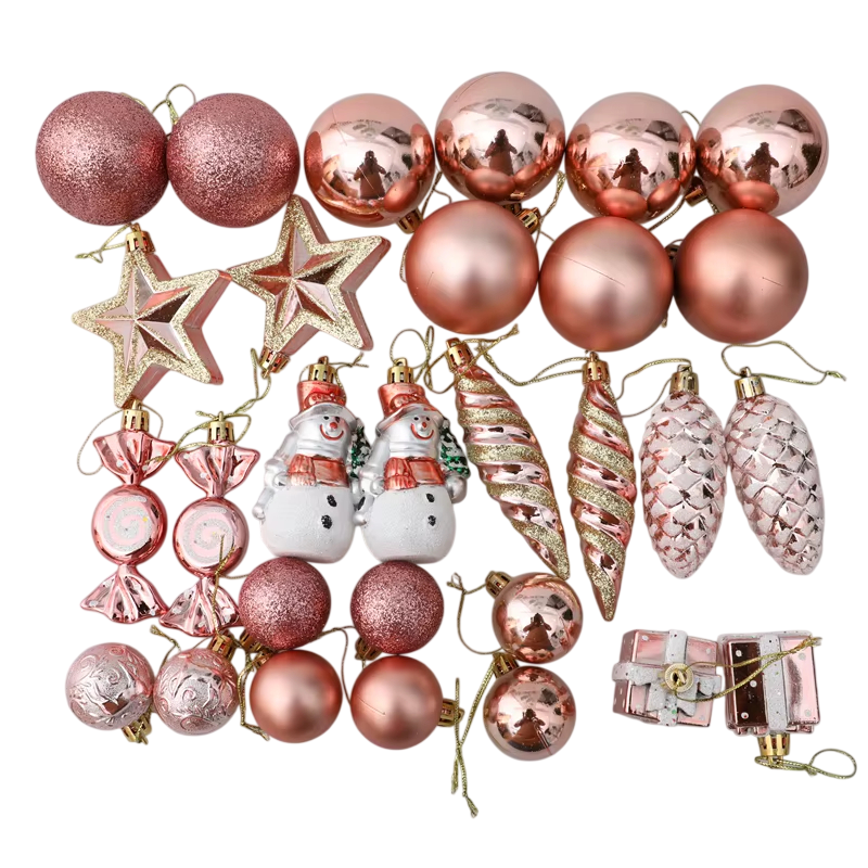 Dieses reichhaltige Set hängender Weihnachtsdekorationen bringt eine zauberhafte Kombination aus traditionellen und verspielten Formen, die jedes Interieur zum Strahlen bringen. Kugeln, Schneemänner und Tannenzapfen schaffen eine einzigartige Harmonie zwischen klassischer Eleganz und fröhlicher festlicher Stimmung. Die Dekorationen sind für verschiedene Verwendungsmöglichkeiten geeignet – vom Baum über Fensterdekorationen bis hin zu Girlanden oder saisonalen Arrangements. Der abgestimmte Stil des gesamten Sets ermöglicht es, mühelos einen einheitlichen Look zu kreieren, ohne kompliziert einzelne Dekorationen kombinieren zu müssen. Geeignet für die heimische Dekoration und auch als einfallsreiches Geschenk.