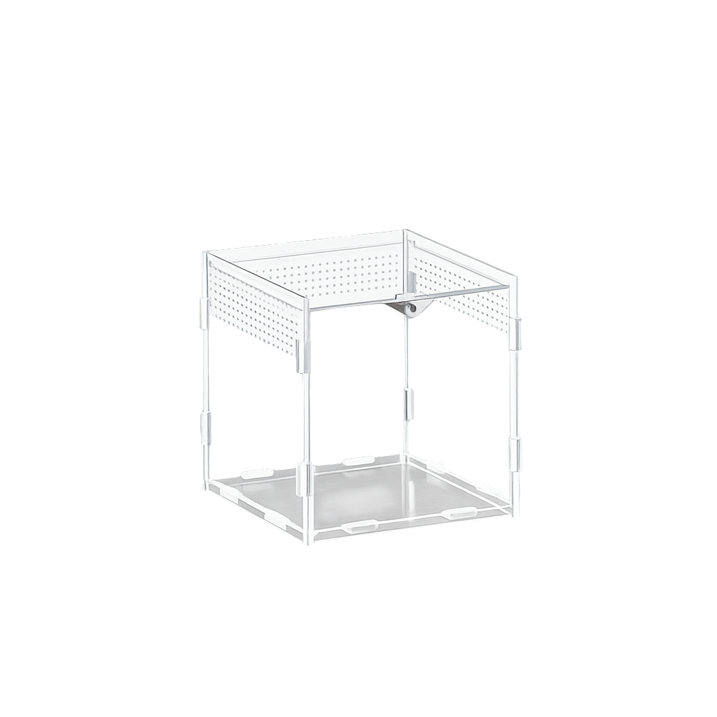 Dieses Acrylterrarium ist ideal für kleine Reptilien, Taranteln, Spinnen, Skorpione und andere kleine Terrarientiere. Mit kompakten Abmessungen von 15 x 15 x 15 cm bietet es ausreichend Platz für Bewegung und Aktivität kleiner Arten. Hergestellt aus hochwertigem Acryl, das maximale Transparenz gewährleistet, um die Tiere zu beobachten, ohne ihr natürliches Verhalten zu stören.
