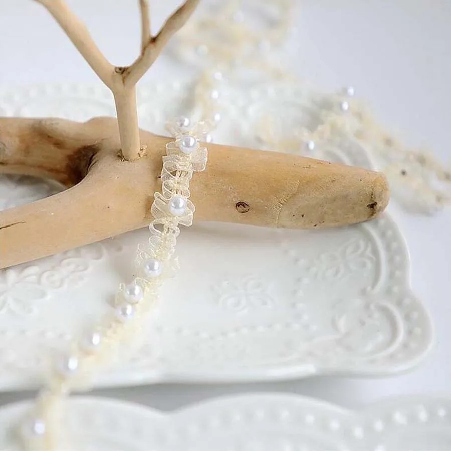 Die Borte besteht aus hochwertigem Material Polyester, das robust, langlebig und gleichzeitig flexibel für verschiedene kreative Projekte ist. Die dekorative Perlenverzierung erzeugt einen interessanten visuellen Effekt und verleiht den Produkten einen eleganten Charakter. Daher ist die Borte besonders für festliche und feierliche Bekleidung geeignet.