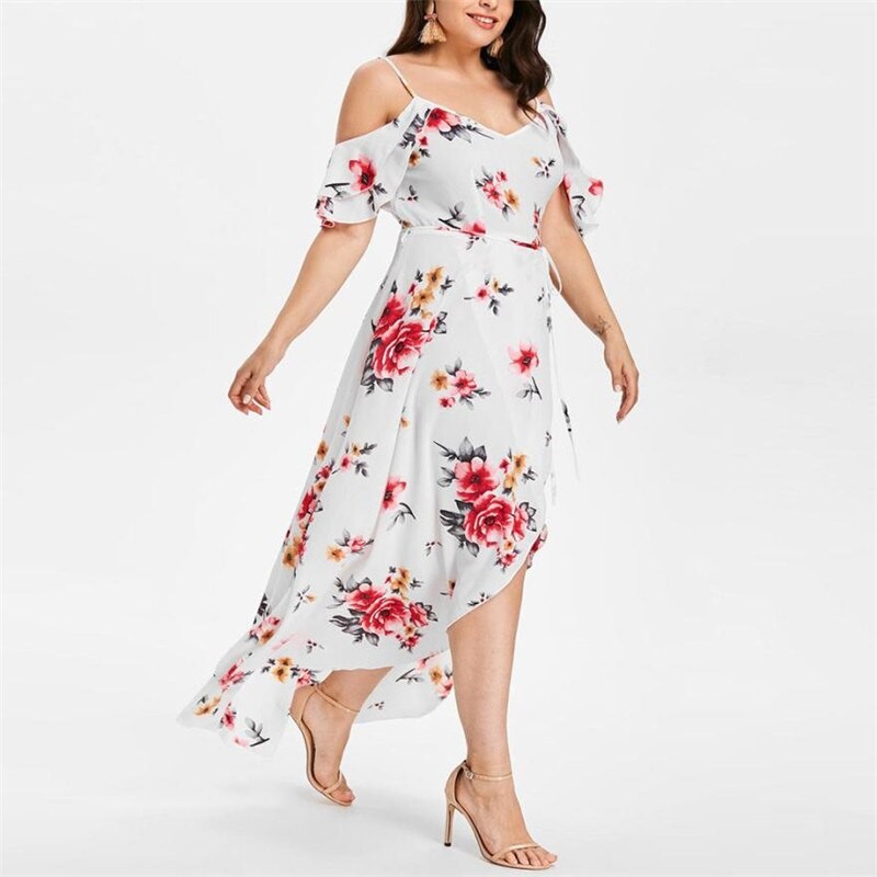 Asymmetrisch gestaltetes Damenkleid mit Boho-Blumendruck.