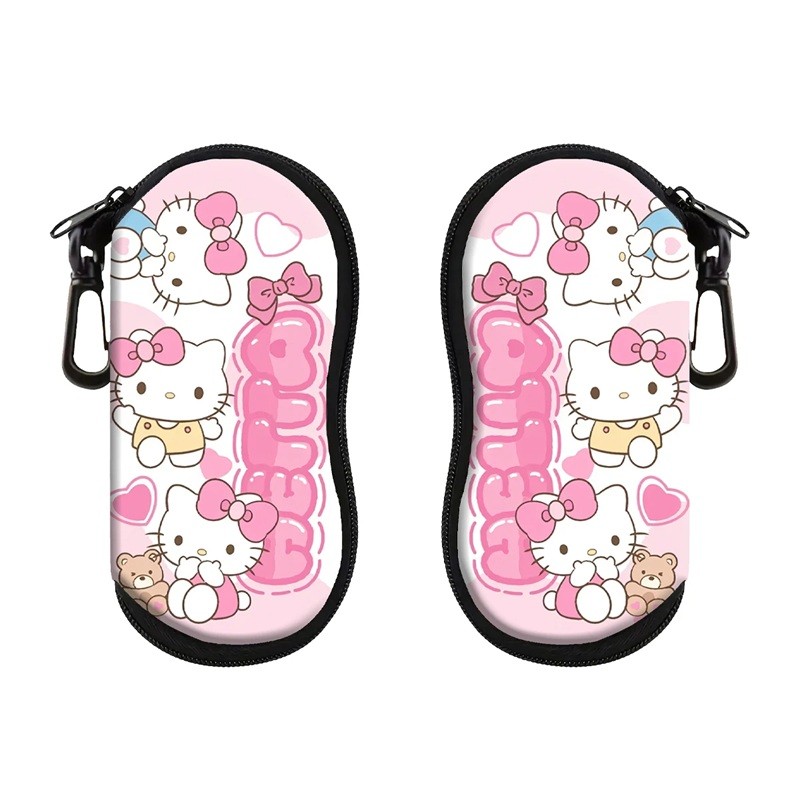 Süßes Brillenetui mit rosa Kätzchen-, Herz- und Schleifenmotiv. Karabiner und Reißverschluss sorgen für sicheren Halt und einfachen Zugriff auf den Inhalt. Vollständige Beschreibung