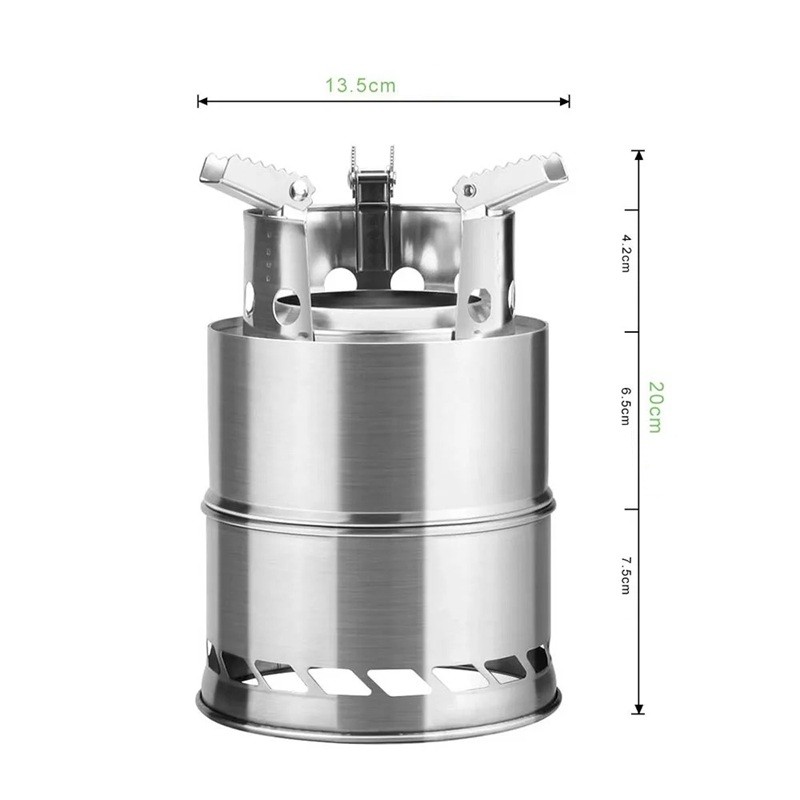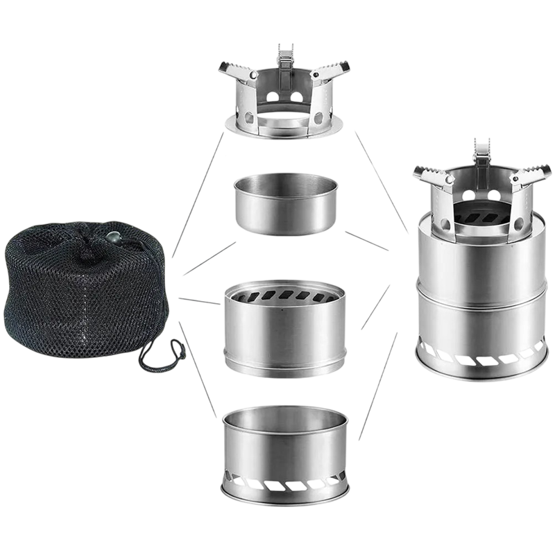Campingkocher aus Edelstahl mit Holzfeuerung Klappbare Konstruktion Outdoor Kochen Netztransporttasche Im Packungsinhalt enthalten