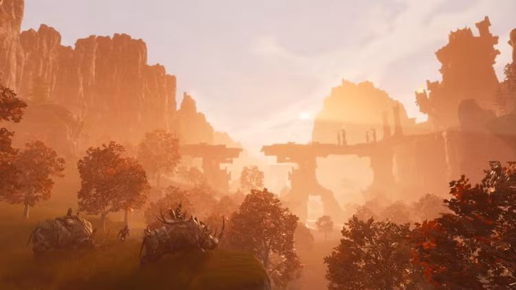 - Stürzen Sie sich in die Schlacht und vernichten Sie Ihre Feinde vom Rücken eines wilden Nashorns. Bauen Sie ein kleines Haus oder eine weitläufige Stadt mit zwei neuen Baukästen: den überfluteten Überresten von Schiffswracks oder dem alten und majestätischen Sturmglas. Finden und rüsten Sie mächtige Gegenstände aus, einschließlich neuer Rüstungssets.