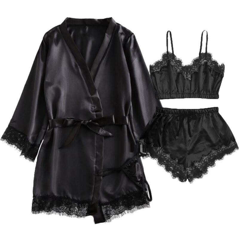 Packungsinhalt: 1x Oberteil, 1x Shorts, 1x Tanga, 1x Bademantel