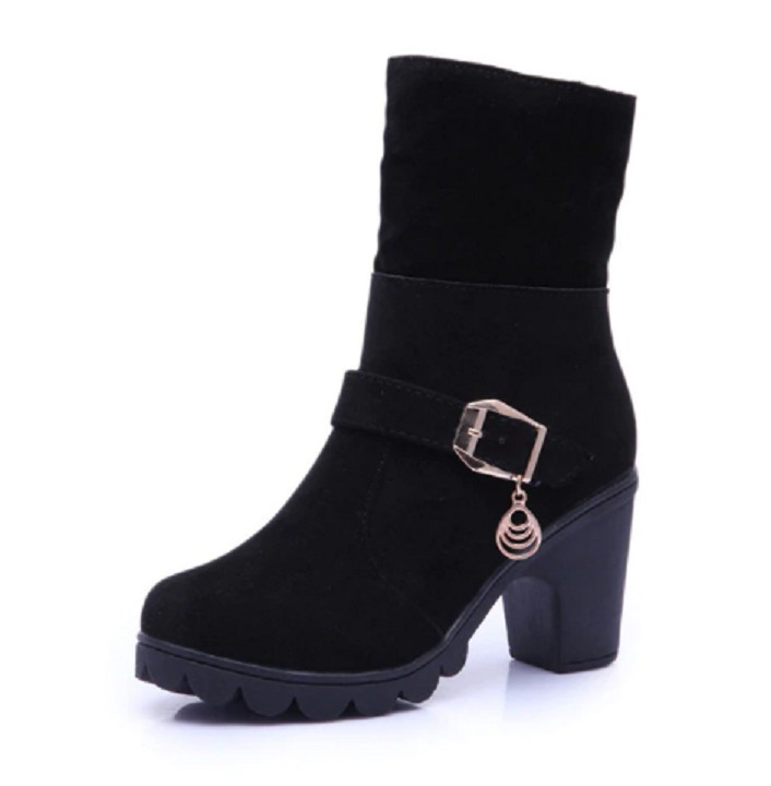 Sie werden die Winterstiefel mit Absatz und Schnalle lieben. Die Schuhe sind aus hochwertigem Material gefertigt.