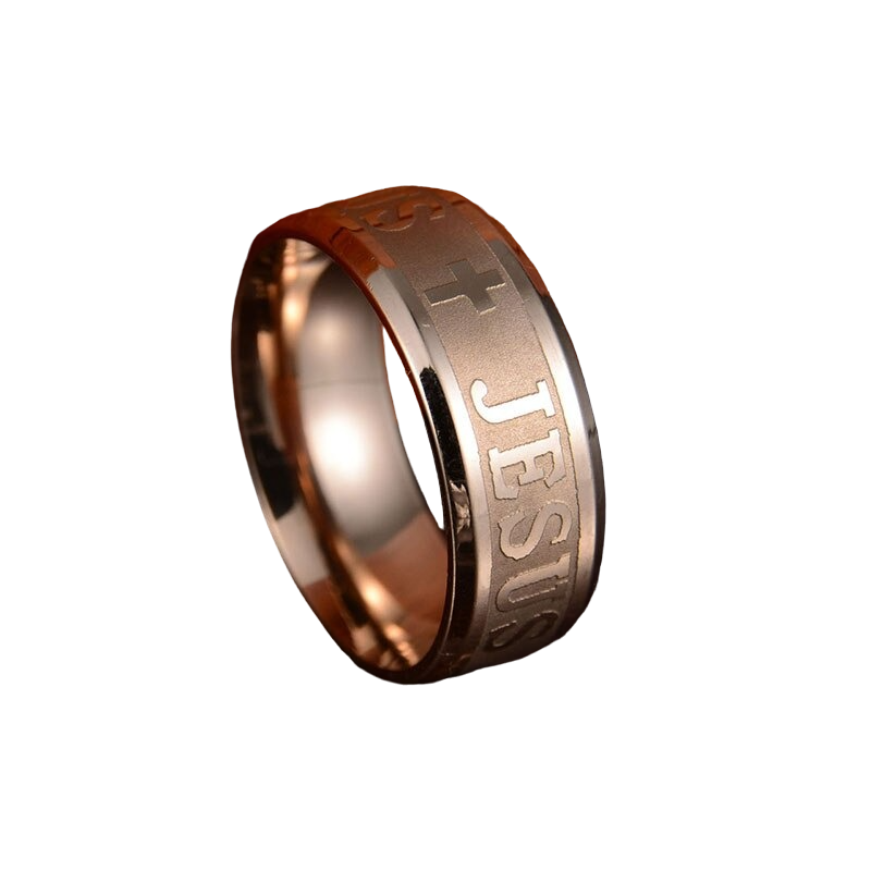 Sind Sie religiös? Dann haben wir einen schlichten Ring mit Aufschrift und Kreuz für Sie.
