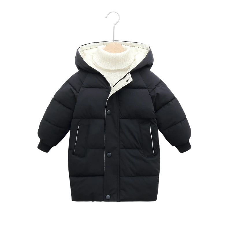 Diese Kinderwinterjacke ist so konzipiert, dass sie maximale Wärme, Komfort und Schutz vor Kälte während der gesamten Wintersaison bietet. Das einfarbige Design ist vielseitig und lässt sich leicht mit Alltagskleidung kombinieren. Die Materialkombination aus Baumwolle und Polyester sorgt für optimale Wärmeisolierung, ein angenehmes Gefühl beim Berühren und eine hohe Abriebfestigkeit. Die Kapuze schützt vor Wind und Schnee, was sowohl Eltern als auch Kindern bei täglichen Aktivitäten zugutekommt. Der doppelte Reißverschluss- und Druckknopfverschluss sorgt für einen sicheren Verschluss und hilft, die Wärme in der Jacke zu halten.