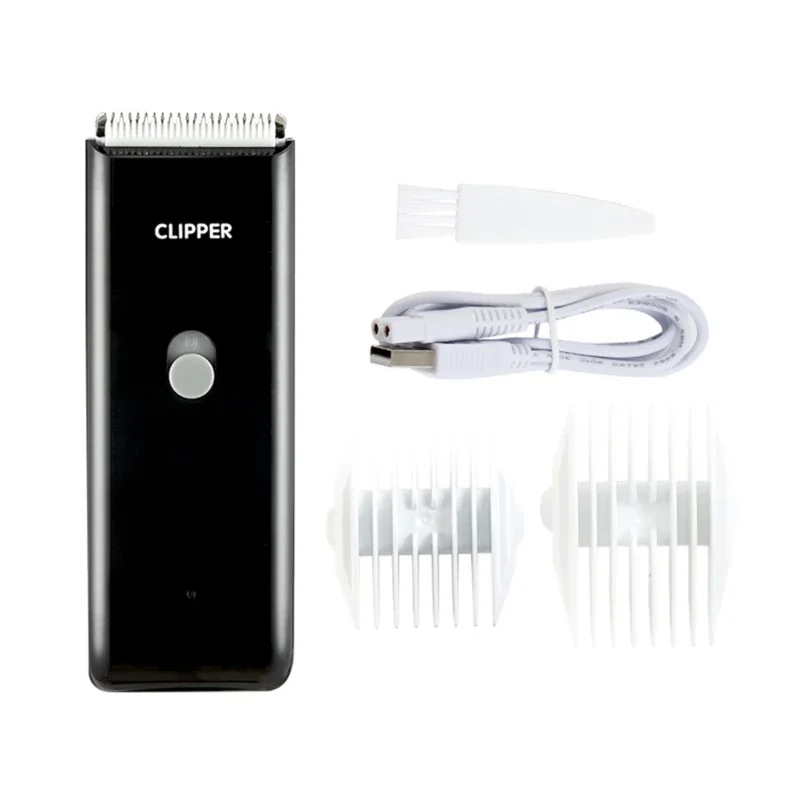 Lieferumfang: 1× elektrischer Haarschneider, 2× Aufsatz, 1× Reinigungsbürste, 1× USB-Ladekabel (ohne Adapter)