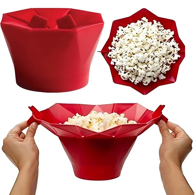Startseite Startseite Haushalt Küchenbedarf Tischaccessoires Schalen und Schüsseln Faltbarer Silikon-Eimer für Popcorn 17 x 9,5 cm Silikon rot geeignet für die Mikrowelle zur Zubereitung von Popcorn