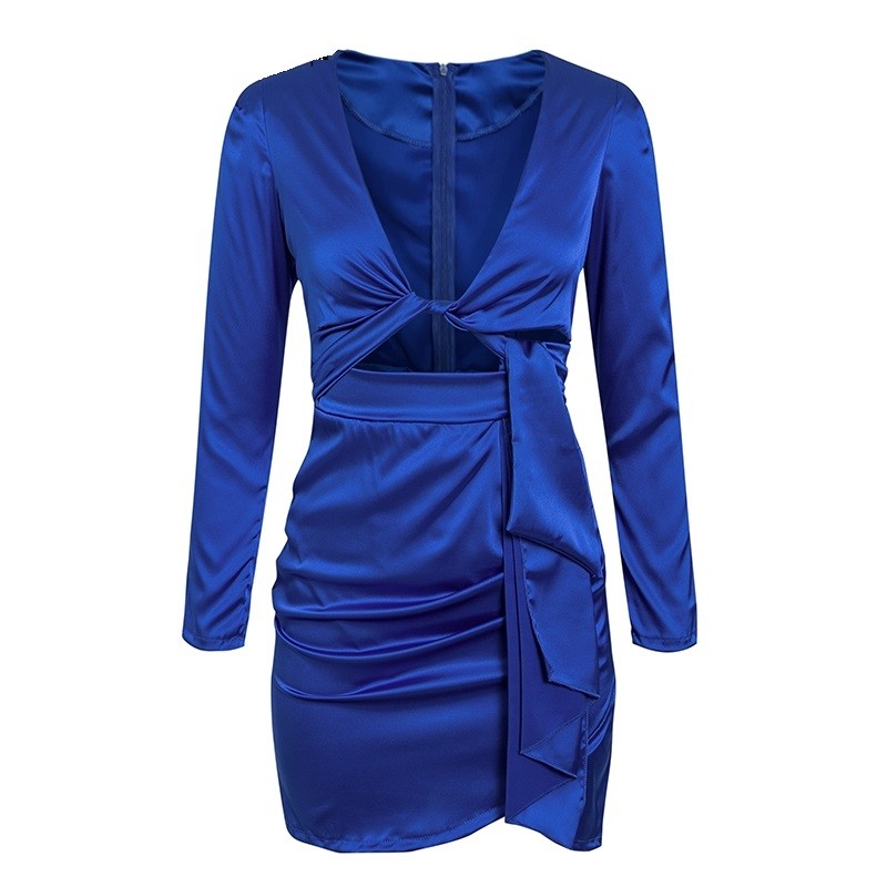 Sexy Damen-Minikleid aus glänzendem Material mit interessantem Ausschnitt.