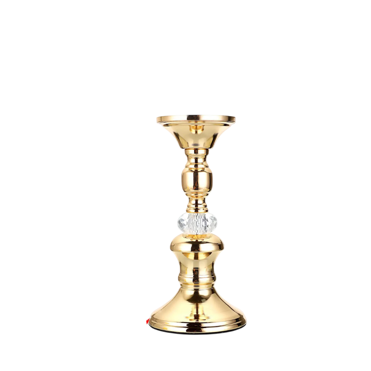 Dieser Kerzenhalter kann als Teil der Dekoration bei verschiedenen festlichen Anlässen verwendet werden. Die goldene metallische Ausführung wirkt markant und lässt sich gut mit weiteren Dekorationen kombinieren. Die säulenartige Form ermöglicht die Platzierung beispielsweise auf einem Esstisch oder einem dekorativen Tablett. Das Kristallelement in der Mitte des Kerzenhalters verleiht der Dekoration ein interessantes Detail. Der Kerzenhalter ist geeignet für Hochzeitsdekorationen, festliche Feiern oder dekorative Arrangements im Innenraum.