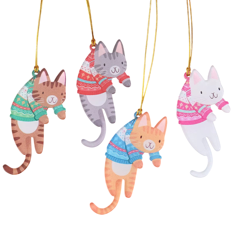 Die hängende Weihnachtsdekoration mit Katzenmotiv erfreut jeden Tierliebhaber – ideal für den Baum, Türen oder als Geschenk. Vollständige Beschreibung