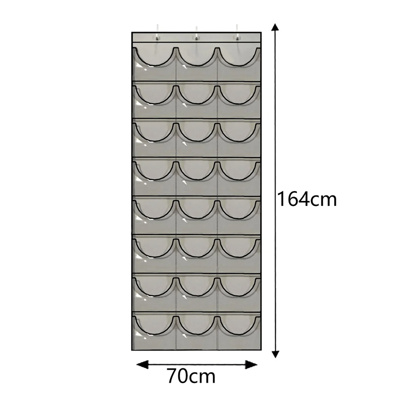 Hängender Organizer 164 x 70 cm mit 24 transparenten Taschen Oxford-Gewebe + PVC Aufbewahrungshänger für Türen mit 3 Haken für Schuhe und Kleinigkeiten
