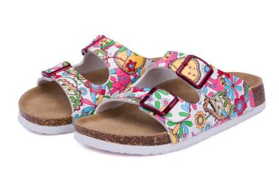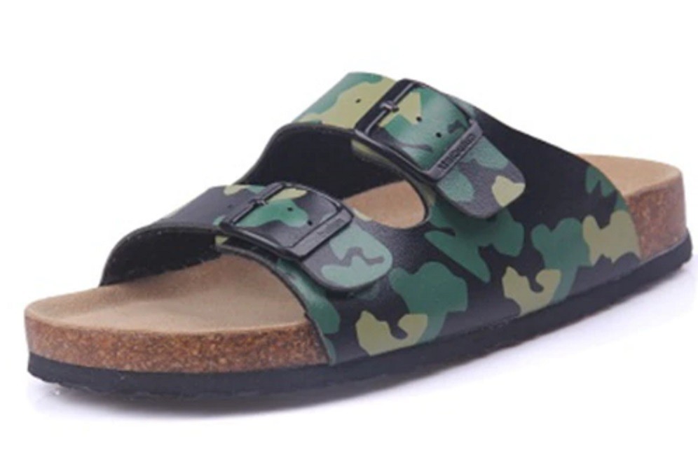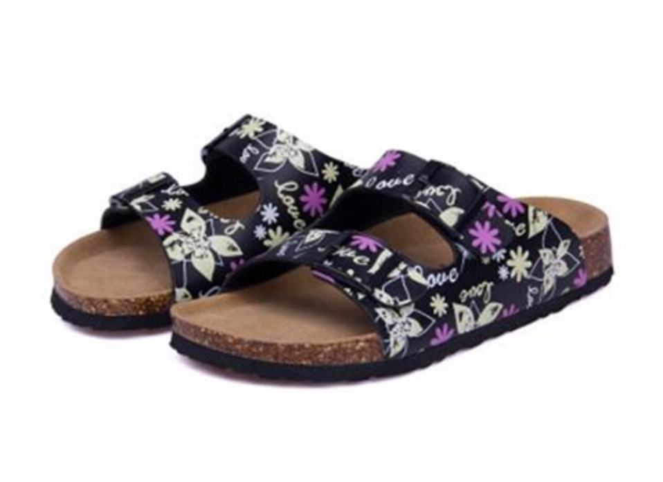 Diese Korkhausschuhe haben eine anatomisch geformte Innensohle, eine rutschfeste Sohle und einen Riemenverschluss.