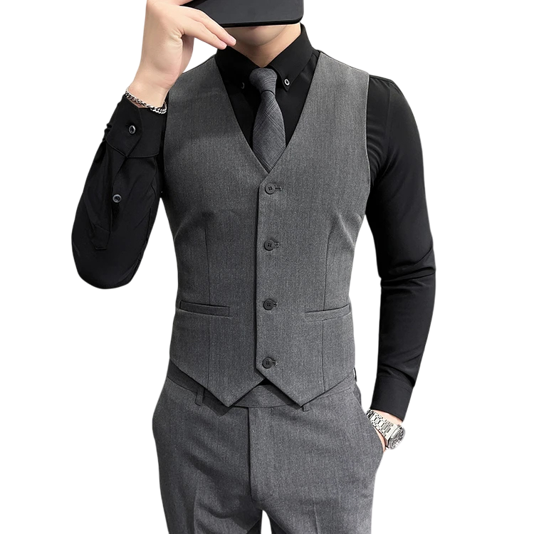 Startseite Startseite Kleidung und Accessoires Herrenbekleidung Anzüge und Sakkos für Herren Elegante Westen für Herren Herren elegante Weste mit Taschen Einfarbige Anzugweste mit Knöpfen Verschiedene Farben Formeller Stil Viskose Polyester