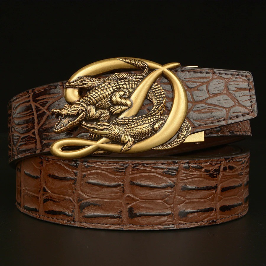 Herren-Ledergürtel mit Krokodilen