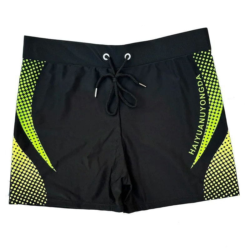 Herrenbadehose schwarz mit bunten Mustern Polyester Mit Kordelzug Elastischer Bund Enganliegender Schnitt Schnelltrocknende Badehose für den Strand