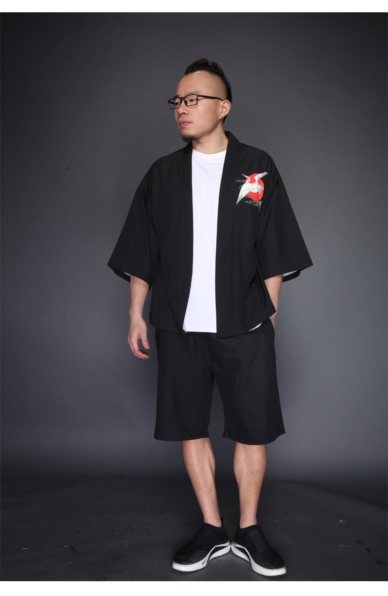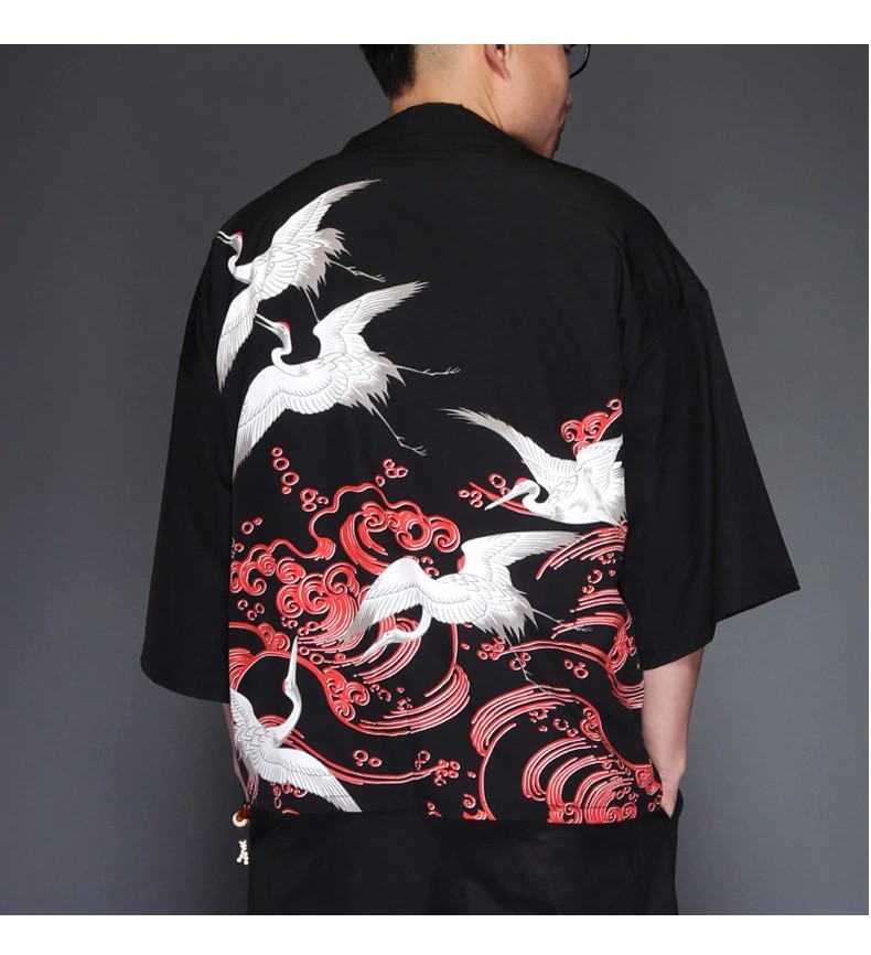 Tragen Sie diese leichte Jacke mit Reiherdruck.