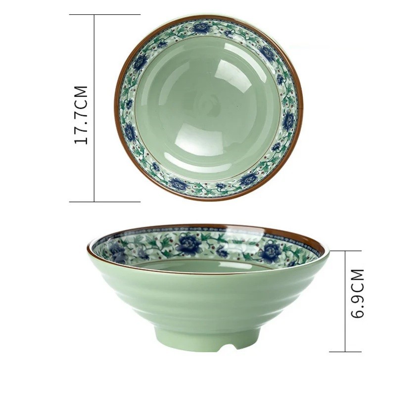 Japanische Porzellan-Schüssel mit grünem Hintergrund und blauem Blumenmuster 600 ml 17,7 x 6,9 cm Schüssel für Ramen und Nudelsuppe