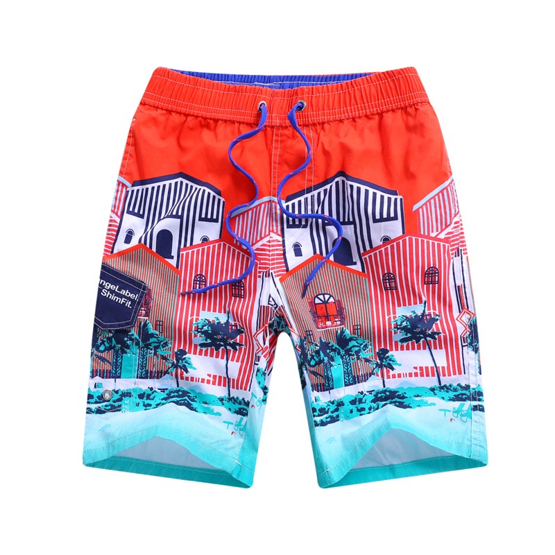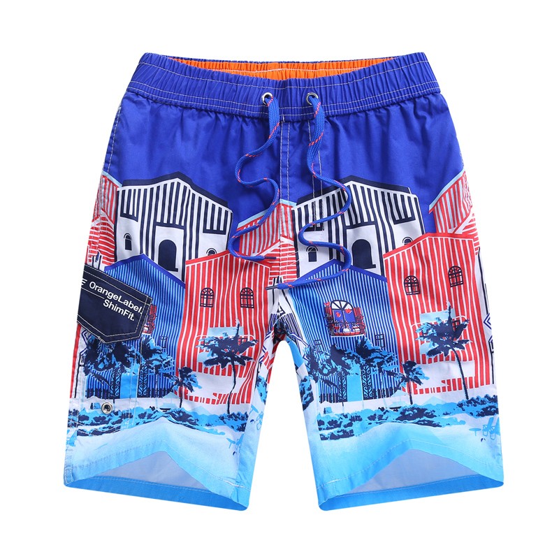 Schöne Strandshorts mit buntem Hausdruck.