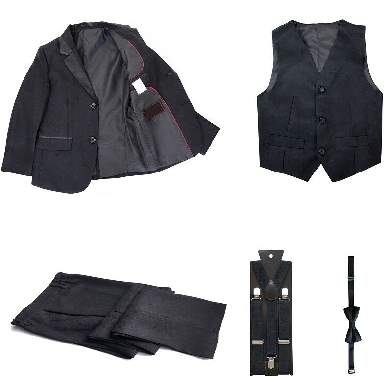 Inhalt der Verpackung: 1x Sakko, 1x Weste, 1x Hose, 1x Krawatte, 1x Hosenträger