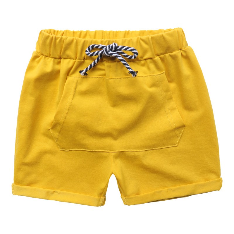 Schöne Shorts für Jungen, die vorne eine doppelseitige Tasche haben und mit Schnürsenkeln geschnürt werden.