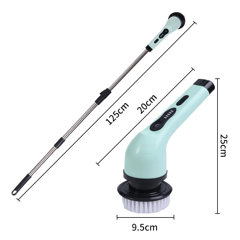 Kabelloser elektrischer Rotationsbürste 125 cm mit teleskopischem Stiel 6 Aufsätzen 3000mAh USB-C Aufladung Reinigungsbürste aus ABS-Material