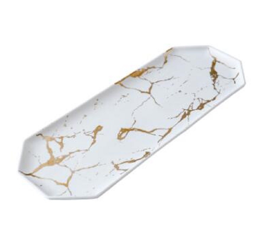 Ein mit einem Marmormuster verziertes Tablett.
