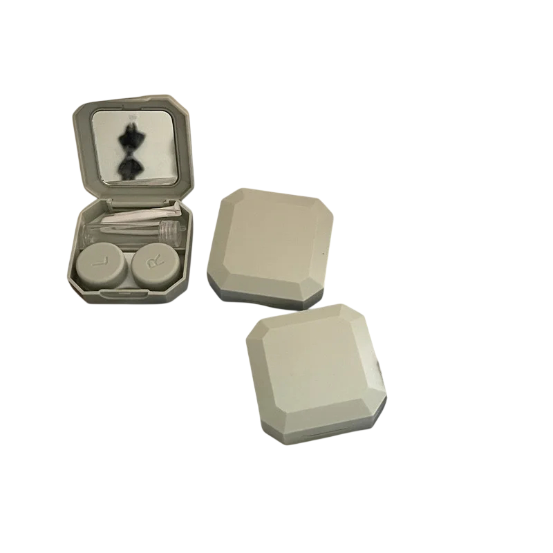 Das Etui enthält einen integrierten Spiegel, der das bequeme Einsetzen und Herausnehmen der Linsen auch unterwegs ermöglicht. Der Innenraum umfasst eine doppelte Linsenbox und weiteres Zubehör, das für die Nutzung erforderlich ist.