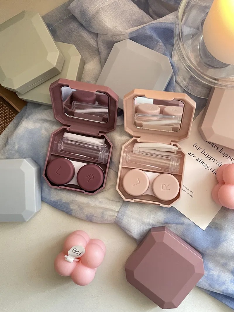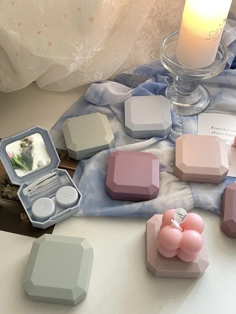 Kontaktlinsenetui mit Spiegel und Zubehör Größe 5,9 x 5,9 x 2 cm farbiges Kunststoffetui für Reisen