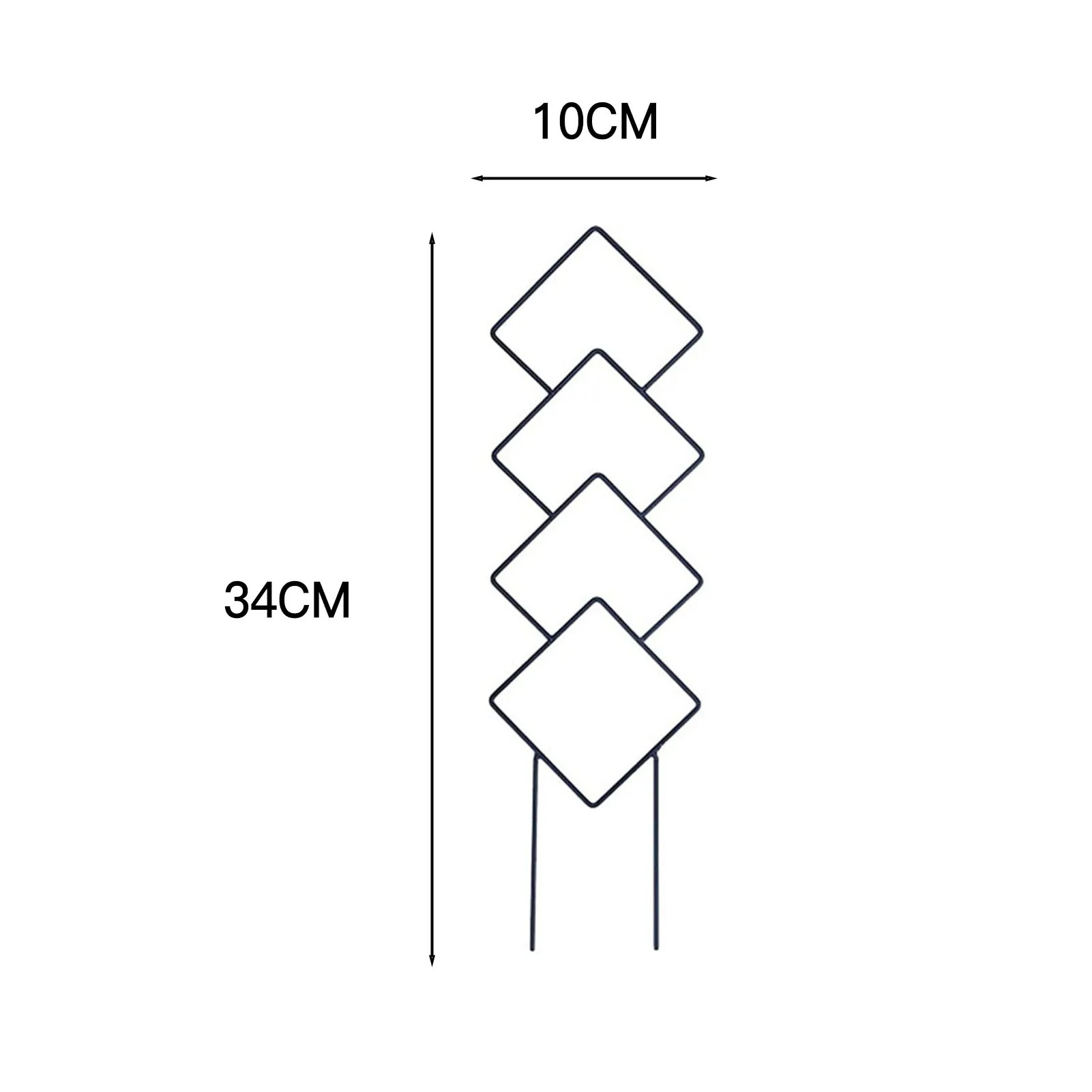 Die rautenförmige Anordnung verleiht der Stütze ein anderes Aussehen im Vergleich zu herkömmlichen geraden Stützen und bewahrt gleichzeitig ihre funktionale Nutzung. Die Konstruktion bietet mehr Punkte, um Stängel und Triebe nach Bedarf zu führen. Die schmale Ausführung nimmt nicht viel Platz ein und lässt sich leicht zwischen Blättern und anderen Teilen der Pflanze integrieren. Dadurch ist der Ständer für die regelmäßige Pflege von Pflanzen geeignet, die während des Wachstums einen stabileren Stützpunkt benötigen. Die Stütze kann helfen, die Pflanze übersichtlicher und besser ausgerichtet zu halten.