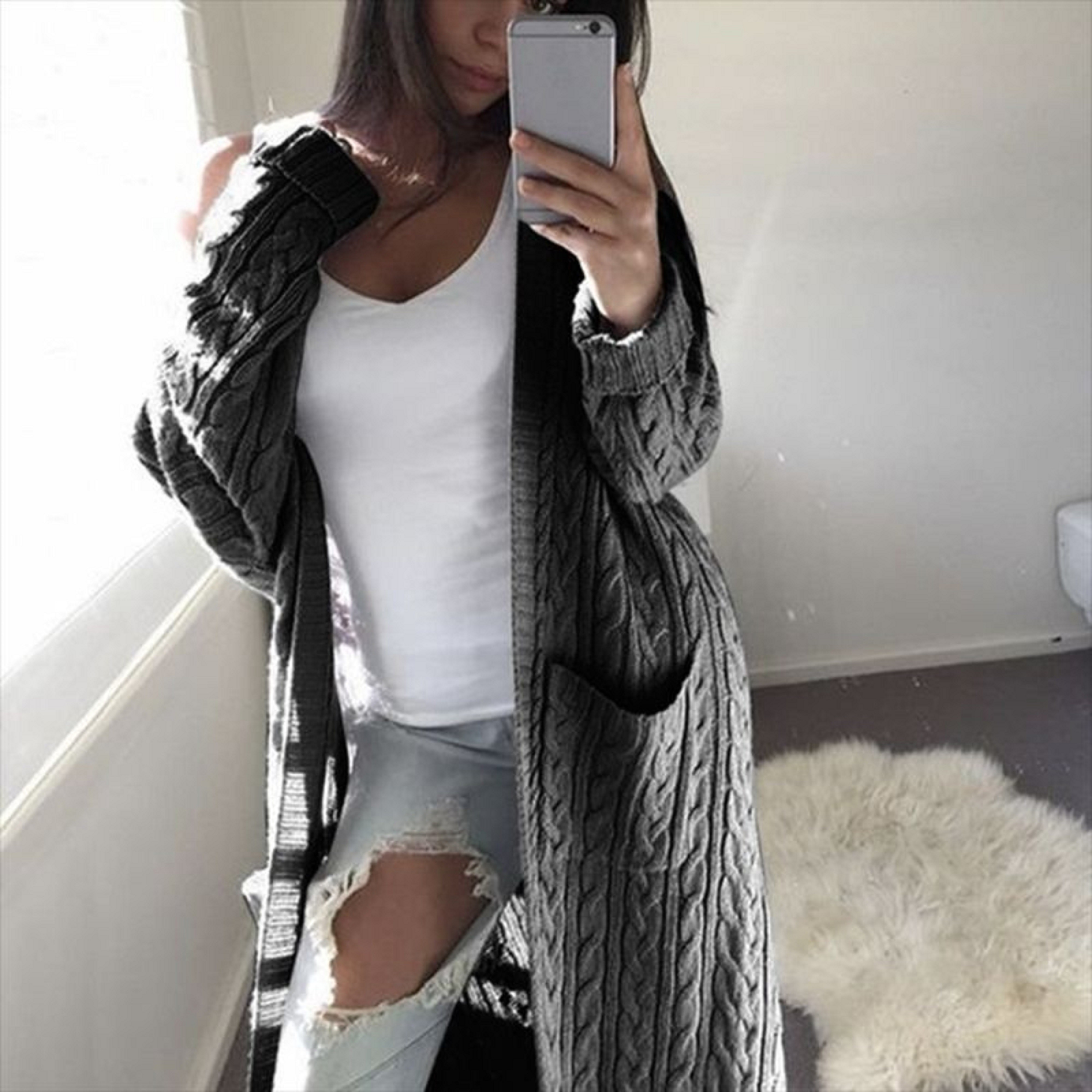 Langer Damen-Cardigan mit Taschen