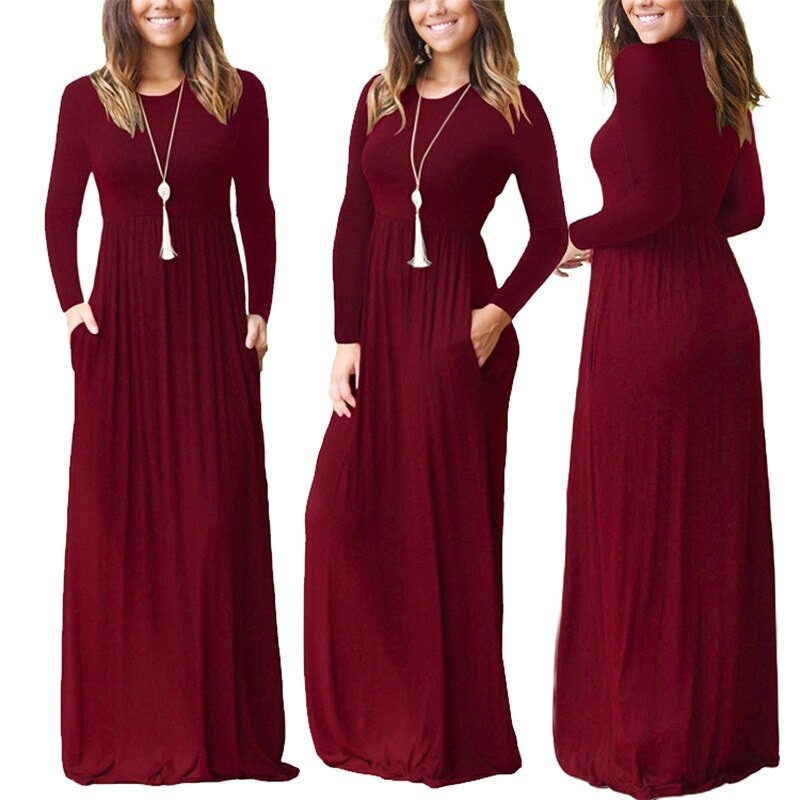 Langer, weiter Rock und klassischer Rundhalsausschnitt.