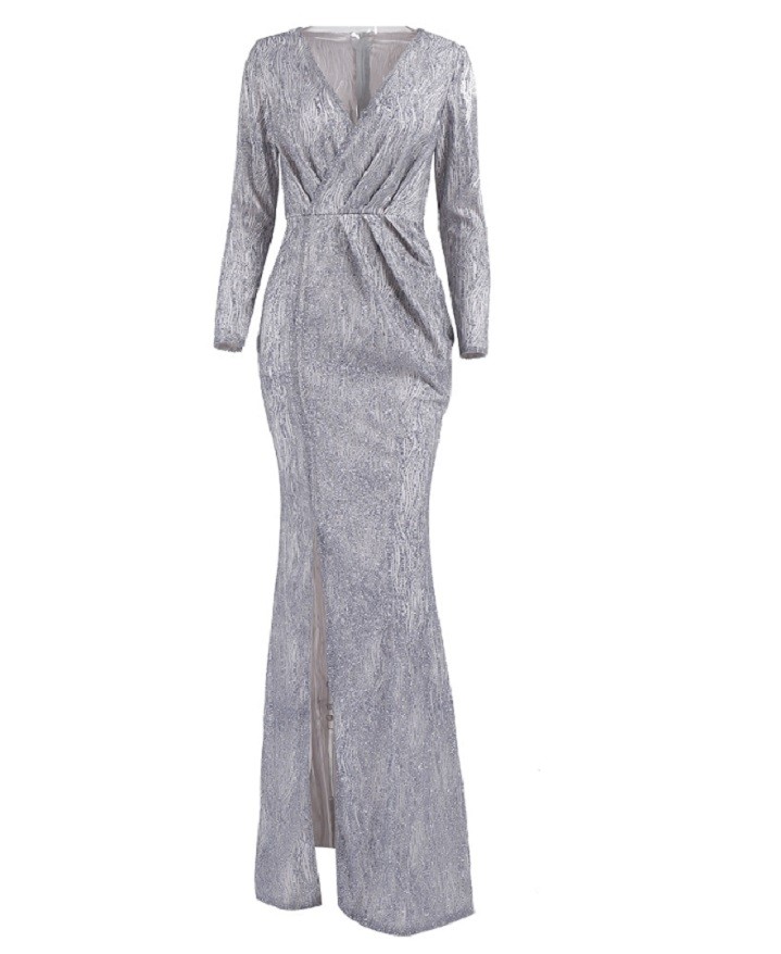 Luxuriöses langes Abendkleid mit langen Ärmeln.