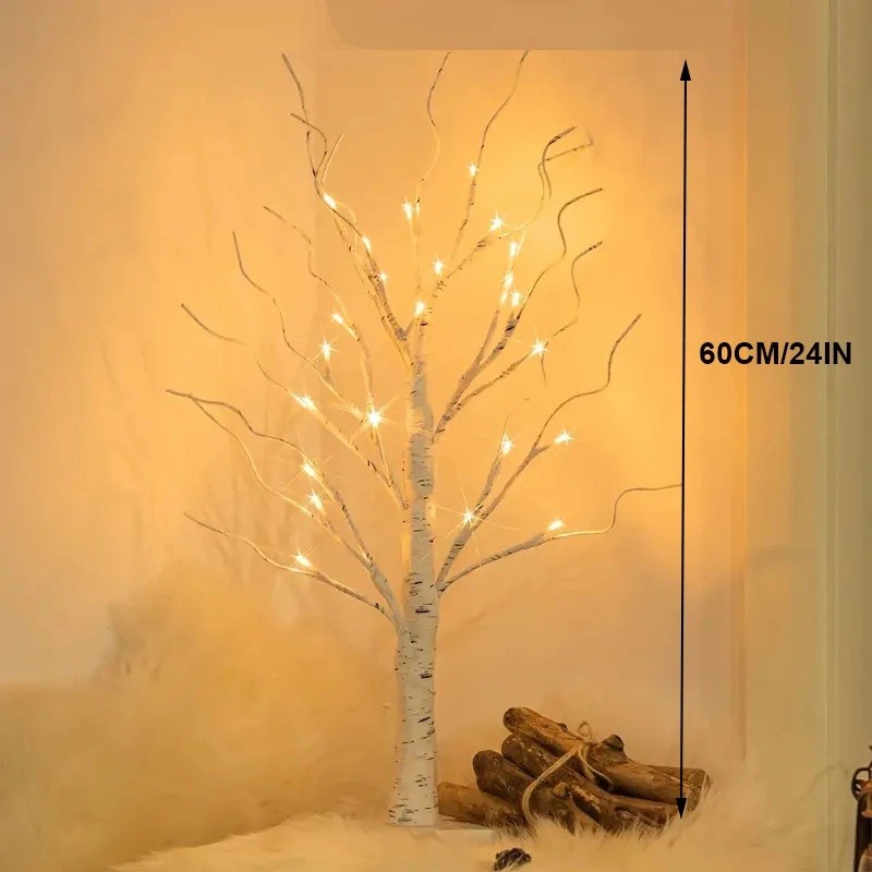 Startseite Startseite Haushalt Lampen und Leuchten Nachtlichter Lichtbirkenbaum 60 cm 24 LED auf Batterien Dekorativer Baum für Innenräume Natürliches modernes Licht für Tisch und Regal