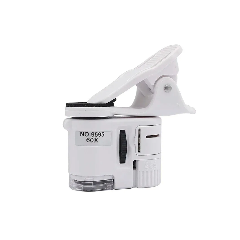 Diese tragbare 60-fache Lupe ist mit LED- und UV-Licht ausgestattet und kann mit einem stabilen Clip an einem Mobiltelefon befestigt werden. Sie ist ein ideales Werkzeug für die detaillierte Untersuchung von Objekten in vielen Bereichen – von der Echtheitsprüfung von Banknoten und Schmuck über die Überprüfung von Briefmarken, Elektronik, Pflanzen und Steinen bis hin zum Einsatz im Heim- oder Bildungsbereich. Einstellbare Schärfe und starkes Licht ermöglichen eine scharfe und klare Sicht auch in dunklen Umgebungen. Die Lupe ist leicht, kompakt und dank des integrierten Schalters einfach zu bedienen. Sie wird von Profis und Laien geschätzt, die einen genauen Blick auf kleine Details benötigen.