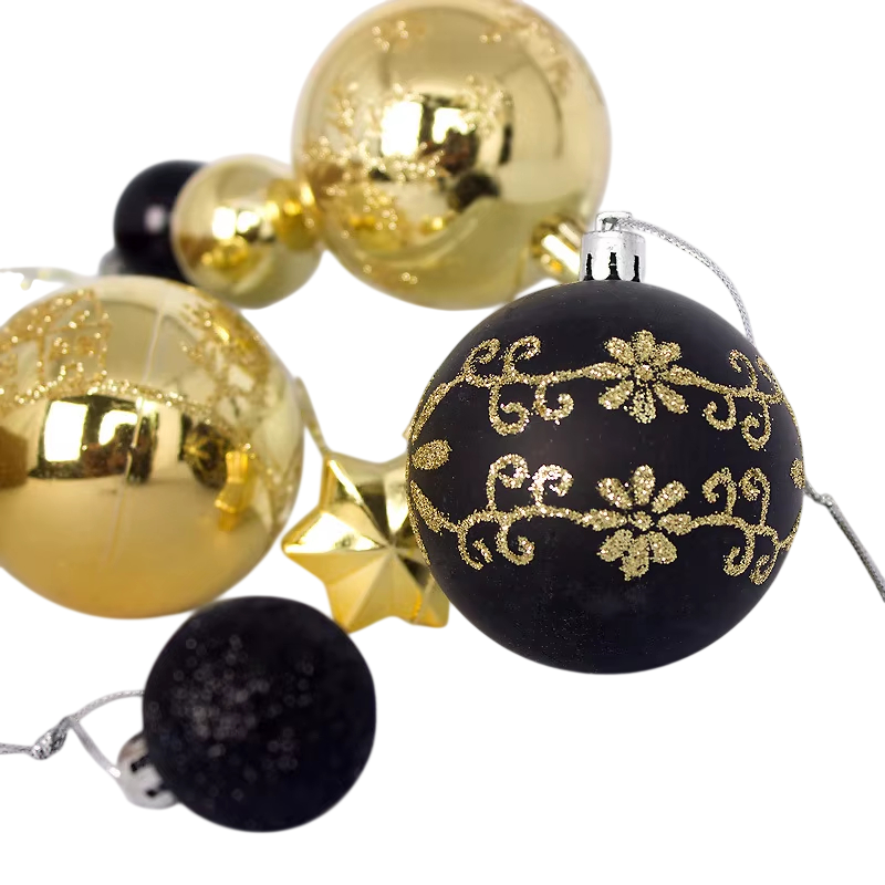 Startseite Startseite Haushalt Wohnaccessoires und Deko Weihnachtsdekoration Luxuriöse Weihnachtsdekoration 44 Stück 3 - 6 cm Schwarz-goldene Kugeln und Sterne Verschiedene Größen von Christbaumschmuck