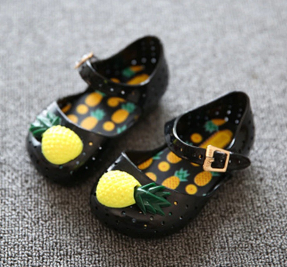 Mädchen-Gummisandalen mit einer Mini-Ananas-Verzierung werden allen kleinen Damen gefallen.