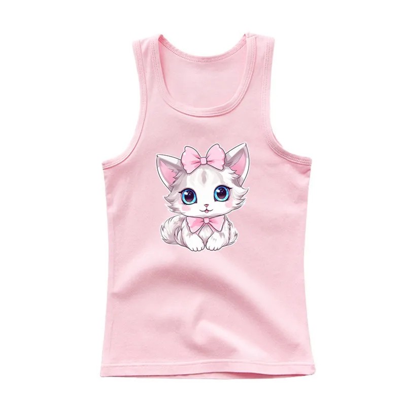 Startseite Startseite Kleidung und Accessoires Kinderkleidung Mädchenkleidung Tank Tops für Mädchen Mädchen Sommer Tanktop ohne Ärmel 100% Baumwolle Einfarbiges T-Shirt mit gezeichneter Katze Süßes Prinzessinnen-Top für Kinder Bequem in verschiedenen Farben