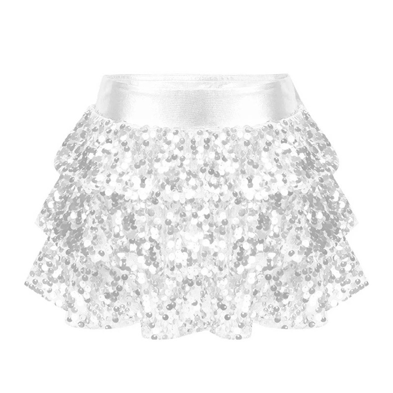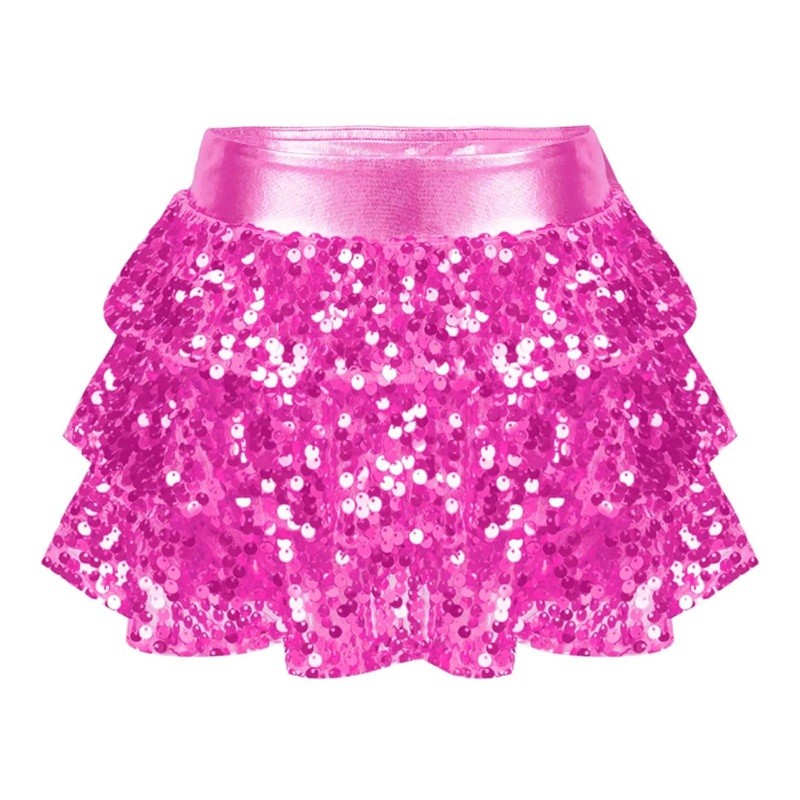 Startseite Startseite Kleidung und Accessoires Kinderkleidung Mädchenkleidung Röcke für Mädchen Mädchenrock Einfarbig mit Raffung und Pailletten Über dem Knie Polyester Festlicher Glitzerrock für Mädchen