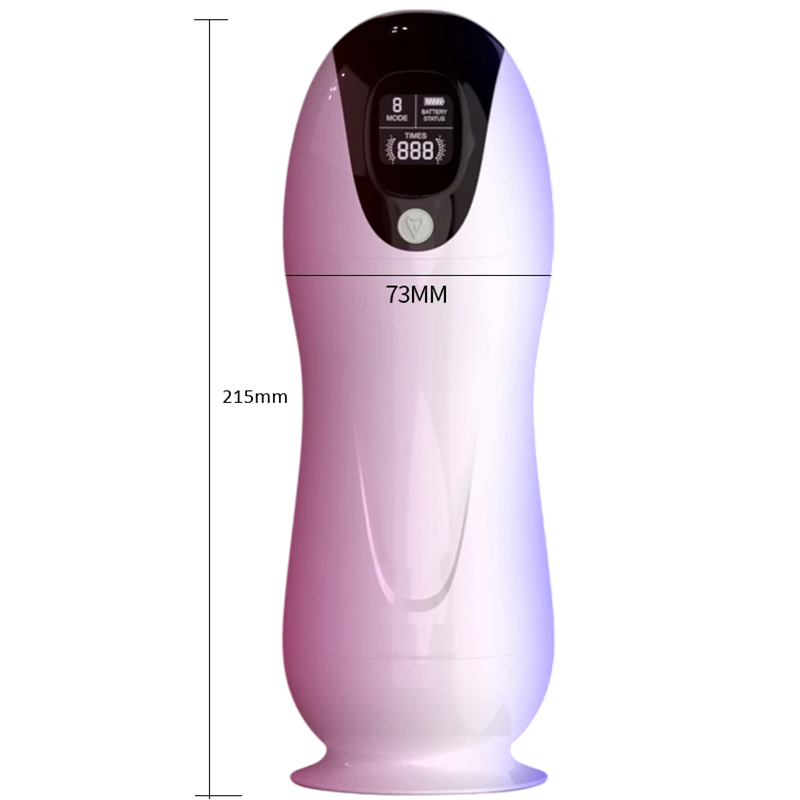 Auf dem integrierten LED-Display können der aktuelle Vibrationsmodus und die Saugintensität, der Ladezustand der Batterie und der Timer verfolgt werden. Das Spielzeug bietet 8 verschiedene Vibrations- und Saugmodi, die kombiniert werden können, um verschiedene Stimulationsebenen zu erreichen. Der Masturbator reagiert auf akustische Reize, was bedeutet, dass sich Vibrationen und Saugkraft dem Rhythmus, der Lautstärke und der Geschwindigkeit der Musik, der Lautstärke der Seufzer des Partners (bei Verwendung zu zweit) oder den Umgebungsgeräuschen anpassen können. Diese Funktion ermöglicht ein völlig neues Erlebnis, bei dem das Spielzeug „zuhört“ und seine Leistung in Echtzeit ändert.