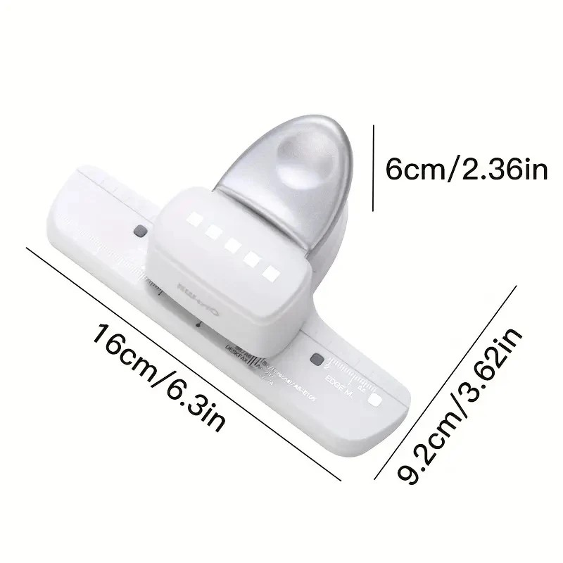 Der manuelle Papierlocher ist ein praktisches Werkzeug, das für das präzise Lochen von Blättern bei der Herstellung von Heften, Planern, Notizbüchern und eigenen Papier-Einlagen konzipiert ist. Dank des stabilen Gehäuses und der Führungsschiene ermöglicht er eine präzise Ausrichtung des Papiers und wiederholtes Lochen ohne Verschiebung. Die kompakten Abmessungen 16 x 9,2 x 6 cm sorgen für eine bequeme Einhandbedienung und Stabilität bei der Arbeit. Die mechanische Ausführung benötigt keinen Strom und ist sofort einsatzbereit, wo immer Sie sind. Das Werkzeug ist sowohl für gewöhnliches Papier als auch für kreative Papiermaterialien geeignet.