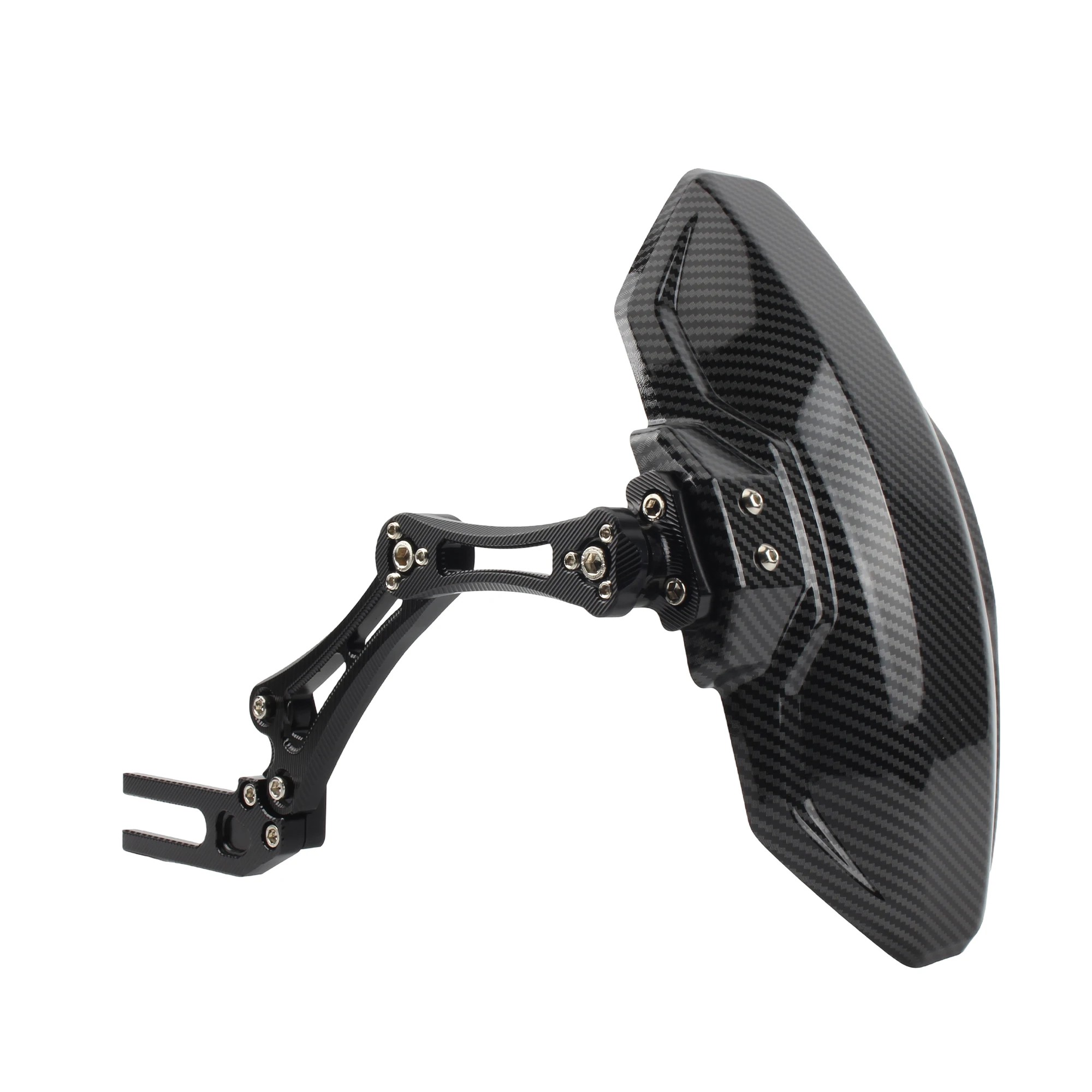Dieses hintere Schutzblech für Motorräder wurde für Fahrer entwickelt, die ihr Motorrad effektiv vor Verschmutzung schützen und gleichzeitig ein sportliches und modernes Aussehen bewahren möchten. Dank seiner Form hilft es, das Spritzen von Wasser, Schlamm, Kies und anderen Verunreinigungen zu reduzieren, die beim Fahren auf die Rückseite des Motorrads, den Stoßdämpfer und die umliegenden Komponenten gelangen. Die schwarze Carbon-Optik wirkt elegant und unauffällig, sodass sie sich leicht mit verschiedenen Motorradstilen kombinieren lässt. Das Schutzblech trägt nicht nur zu einem saubereren Erscheinungsbild des Fahrzeugs bei, sondern reduziert auch die Notwendigkeit einer häufigen Reinigung nach Fahrten unter schlechten Bedingungen. Dank des durchdachten Designs ist es sowohl für den normalen Straßenverkehr als auch für Fahrten im leichten Gelände geeignet.