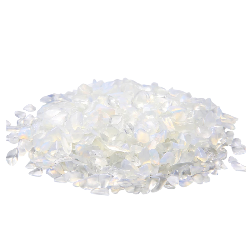 Weiße Opalsteine 3–5 mm aus natürlichem Material. Verpackung 100 g ideal für Dekorationen, kreative Projekte und Arrangements. Vollständige Beschreibung