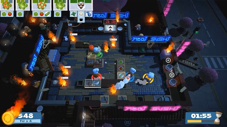 Rollen Sie sich ein und schließen Sie sich der Feier des Kochens, der Zusammenarbeit und des Chaos an! Dieses farbenfrohe DLC stellt die Spieler auf die Probe, während sie neue Levels, neue Rezepte, neue Chefköche und das unverzichtbare Küchengerät – die Kanone – erwerben!