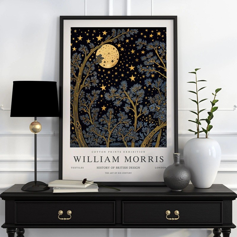 Plakat William Morris botanischer Motiv Nacht mit Bäumen 50x70 cm Polyesterleinwand Wanddekoration für das Interieur