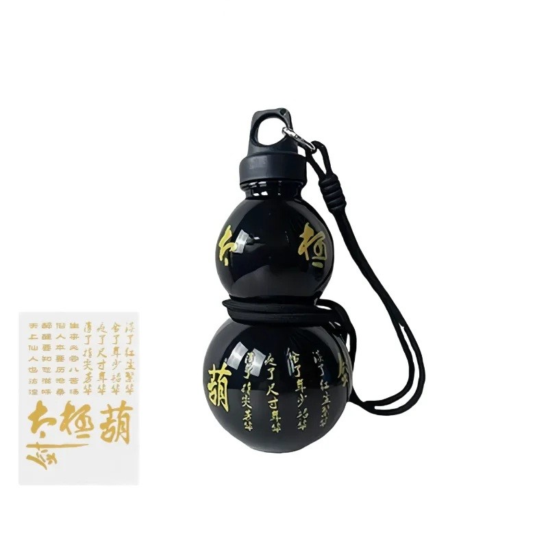 Plastik-Trinkflasche mit chinesischem Motiv 800 ml Kunststoff tragbare Wasserflasche schwarze Flasche mit dekorativen Aufklebern