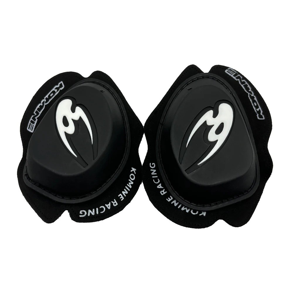 Robuste schwarze Knieslider schützen beim Fahren in Schräglage, einfache Befestigung mit Klettverschluss, geeignet für Rennen, Training und normalen Sportbetrieb. Vollständige Beschreibung