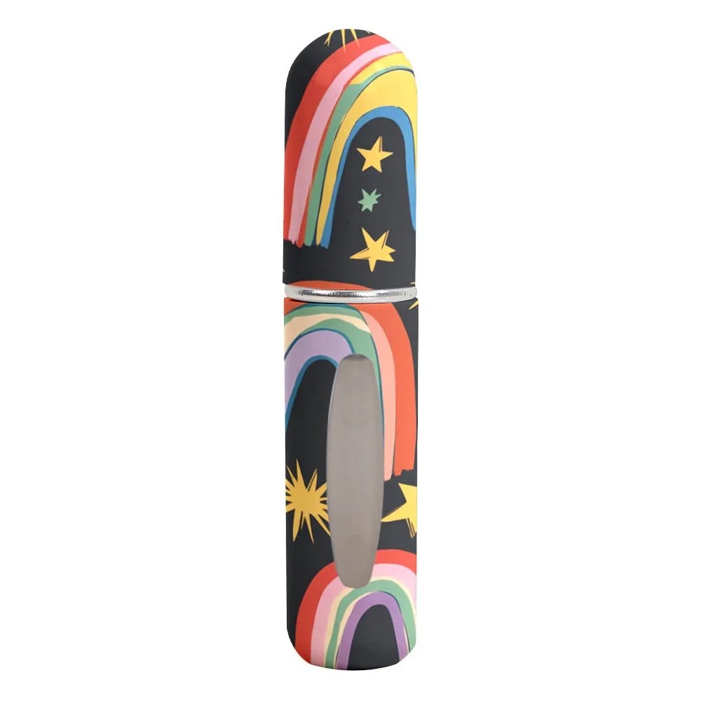 Reiseparfümatizer mit Sprühkopf 5 ml nachfüllbarer kompakter Flakon mit Fenster schwarz mit Regenbogenmotiv und Sternen